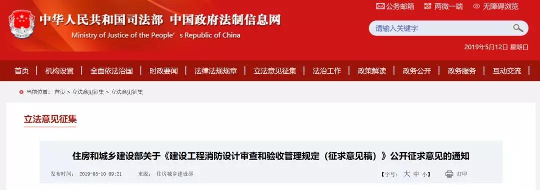 住房和城鄉(xiāng)建設部起草了《建設工程消防設計審查和驗收管理規(guī)定(征求意見稿)》,現(xiàn)向社會公開征求意見。公眾可以在2019年6月10日前,通過以下途徑和方式提出意見: