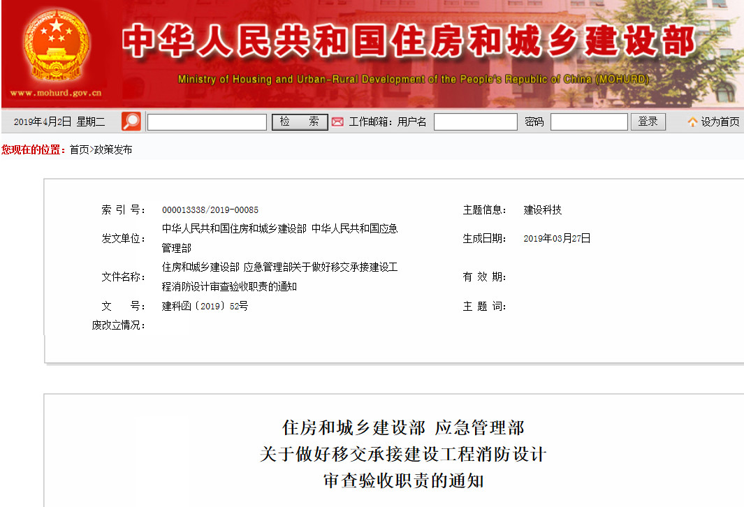 二、2019年4月1日至6月30日為建設(shè)工程消防設(shè)計(jì)審查驗(yàn)收職責(zé)移交承接期,各地應(yīng)于6月30日前全部完成移交承接工作。